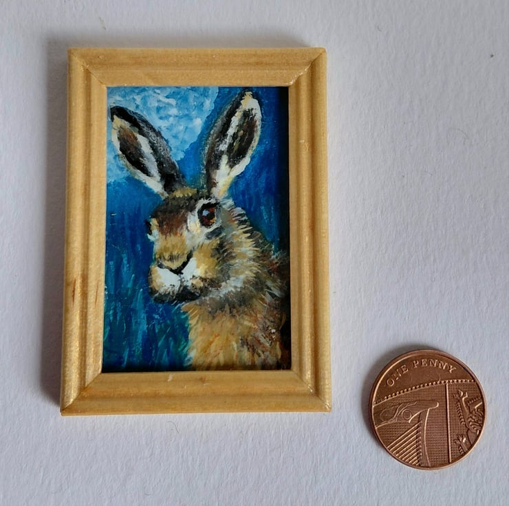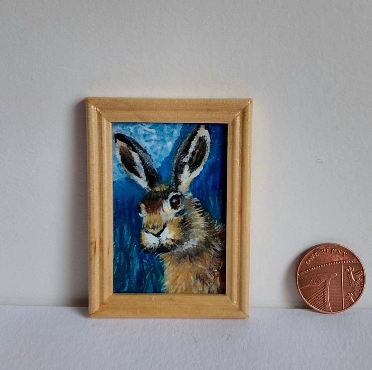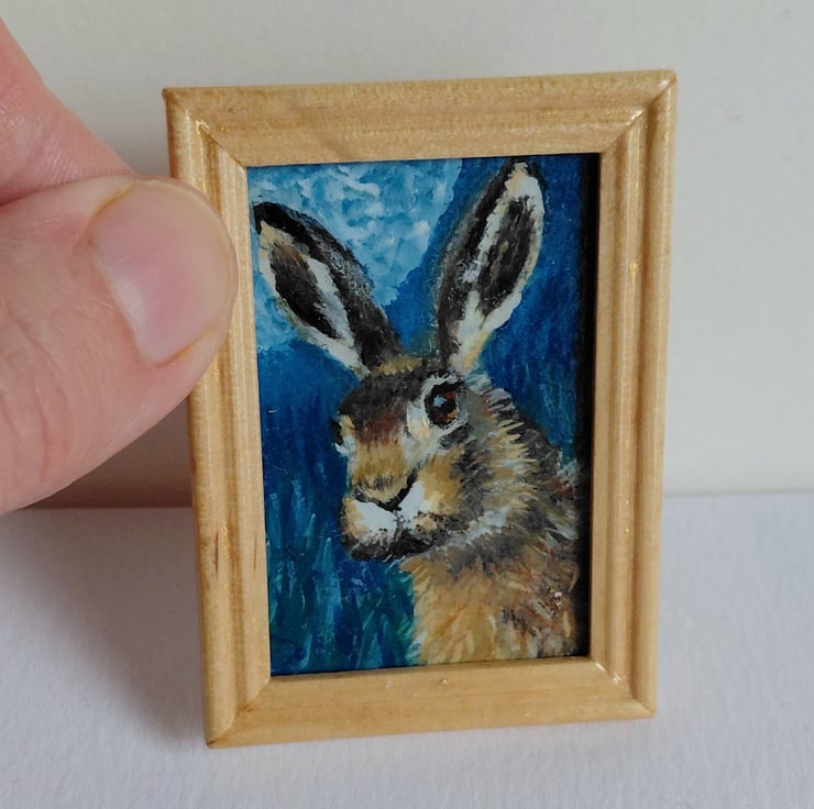 An original oil painting 'Moonlit Hare' Miniature Painted by Traceyann Papworth.