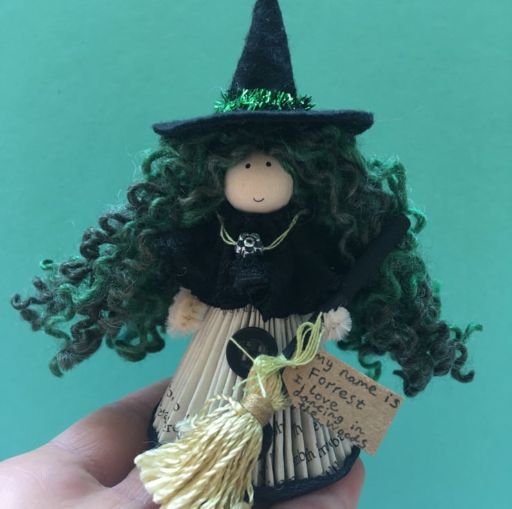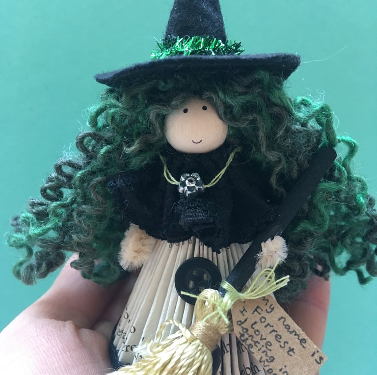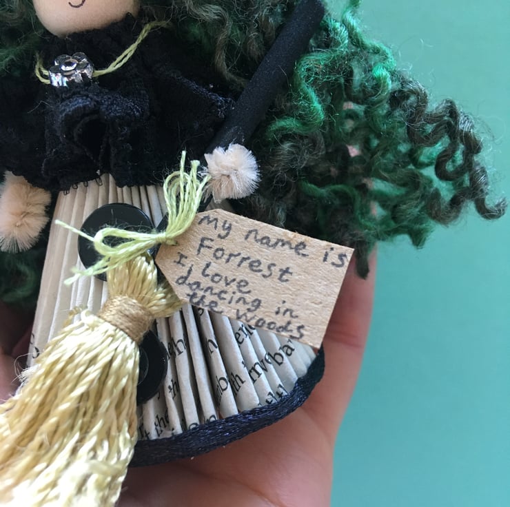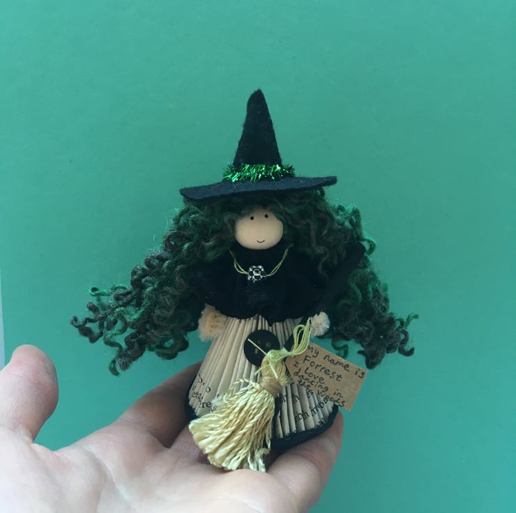 She has a tag which states her name and something that she loves. This little witch is called Forrest, and she loves dancing in the woods.