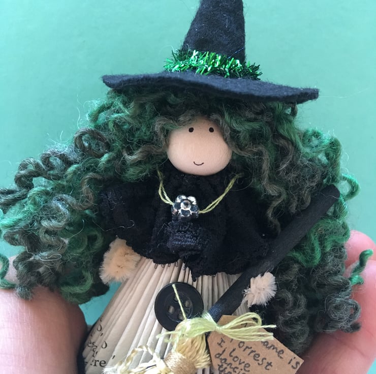 This little witch is handmade and unique with her own personality.