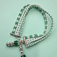Captured Bead Bracelet with 8mm Royal Blue faceted glass beads caught in 10mm silvertone links, hence the name Captured. Something different, a very fluid Bracelet. Handmade. With Lobster Claw fastener, will fit up to 7.1/2" wrist. Thankyou for looking. Lori