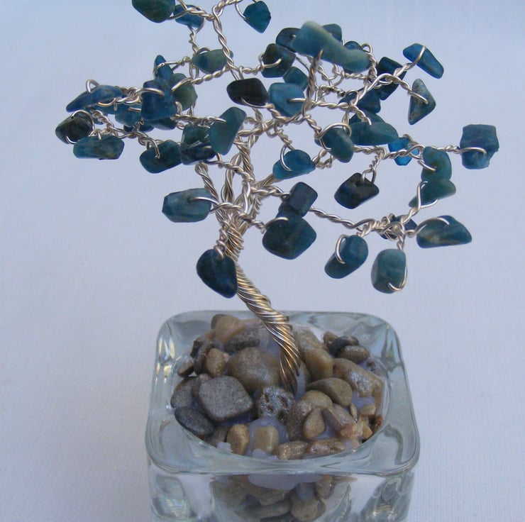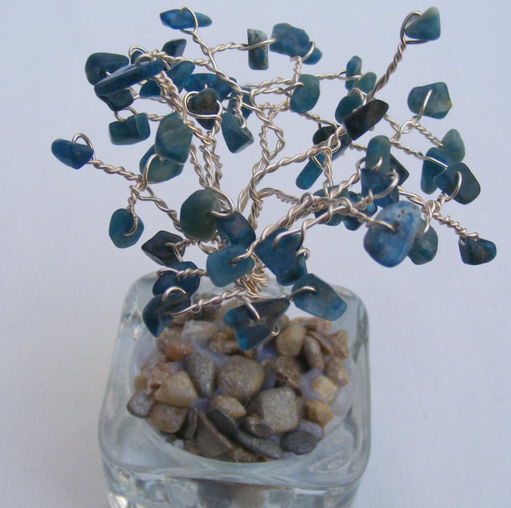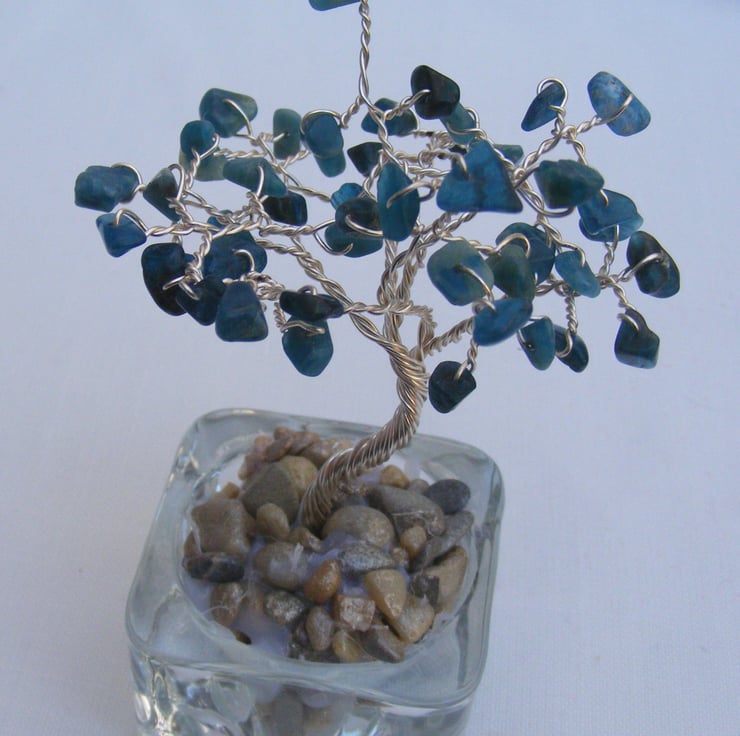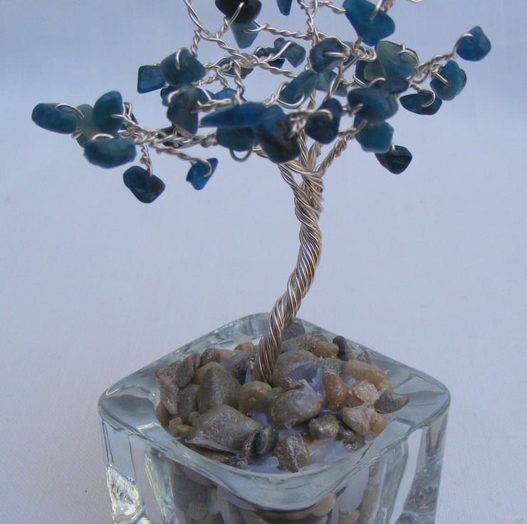 I've handmade this gemstone tree of life using, Appitite nuggets and silver plated wire. Tree is glued into a 5x5cm glass dish with pearlized pebbles. Lovely gift for a loved one or gift for the home.