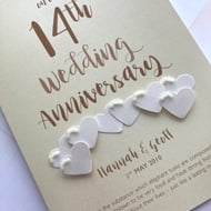 A beautiful keepsake anniversary card for a Bronze (8th) wedding anniversary. Hand crafted to order with utmost care and attention.