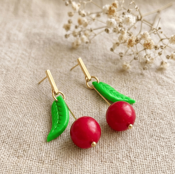 I was inspired by the way sunlight hits ripe fruit in an orchard. I wanted to create a cherry design that wasn't just 'cute,' but also had a sophisticated, metallic glow. These earrings celebrate the simple joy of summer and the beauty of handmade details that you won't find in mass-produced jewelry.