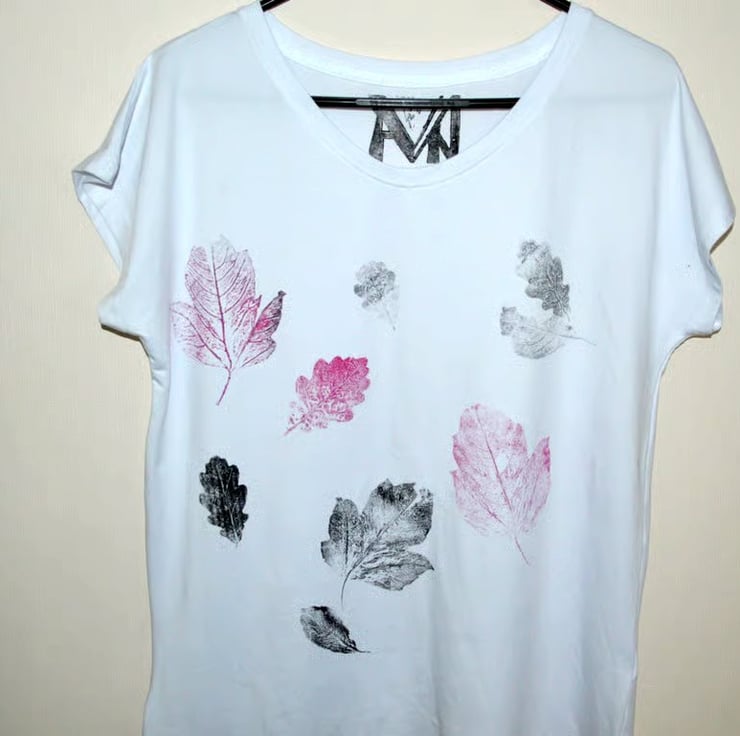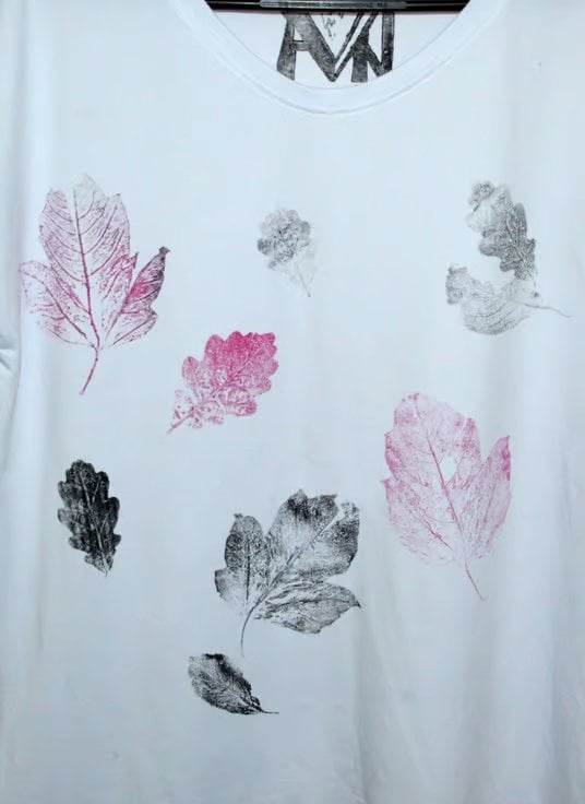 So I was doing some printing with dried leaves from the trees and thought lets put them on a Upcycled T shirts.