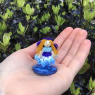 Her head is a wooden bead with carefully hand drawn features, giving her a unique expression.