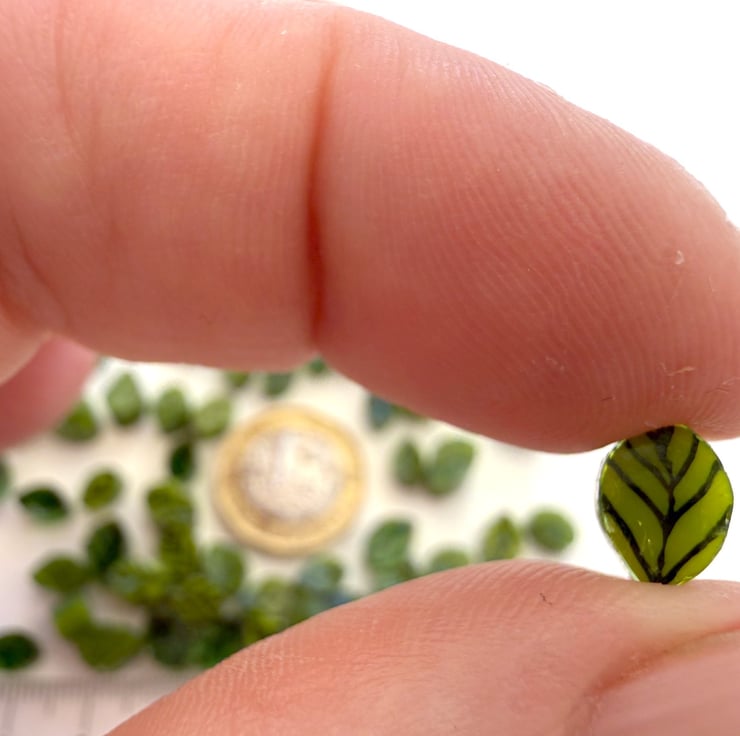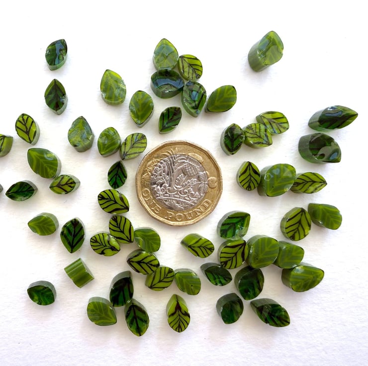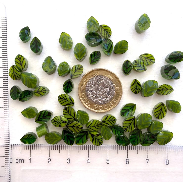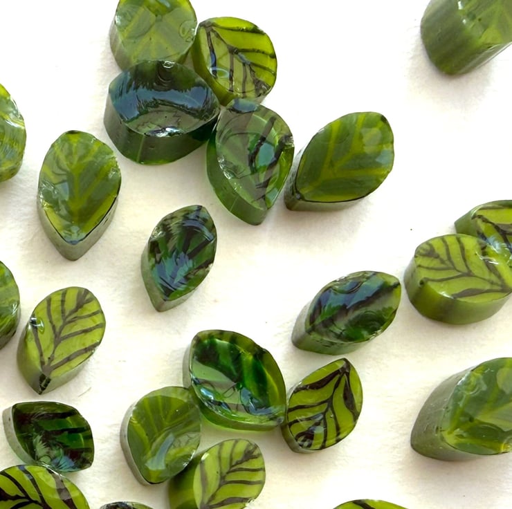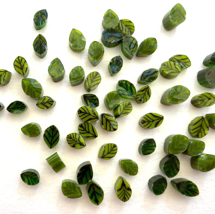 Green leaf design murrini handmade in the UK using 100% Bullseye glass.