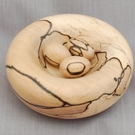 As we are having difficulties with sourcing the plywood used in our work this tealight is, for the moment, an “end of line”. Measuring approximately 11cm wide and 5cm high is comes with a glass liner and one tea light.