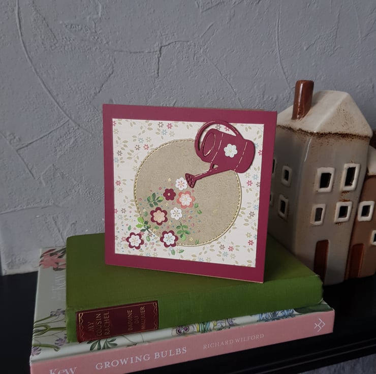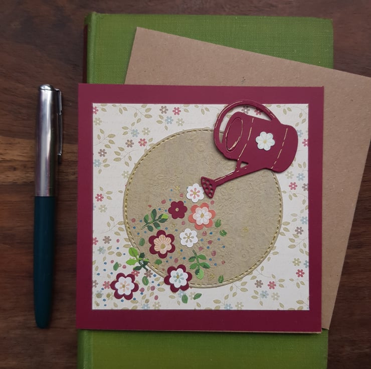 A whimsical, lovely blank card 5inch by 5inch handmade perfect as a birthday card, as a thank you card or as a get-well-soon card .