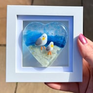 Beautiful blue bubbles encased in glass make this heart totally unique . Adorable and suitable for any occassions. The heart would look beautiful hanging on a wall or glass backdrop. The heart is approximately 3 in x 4 in and drilled and strung with satin ribbon.