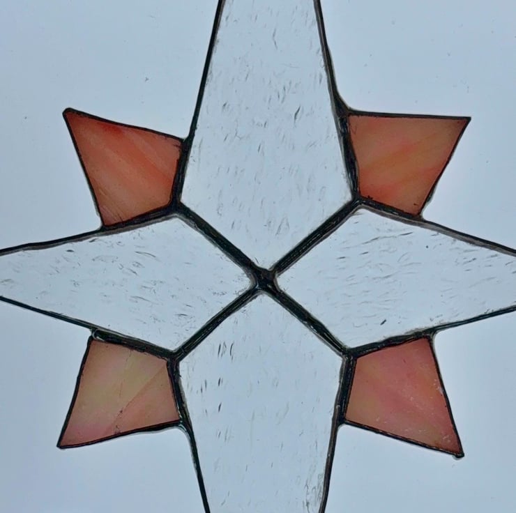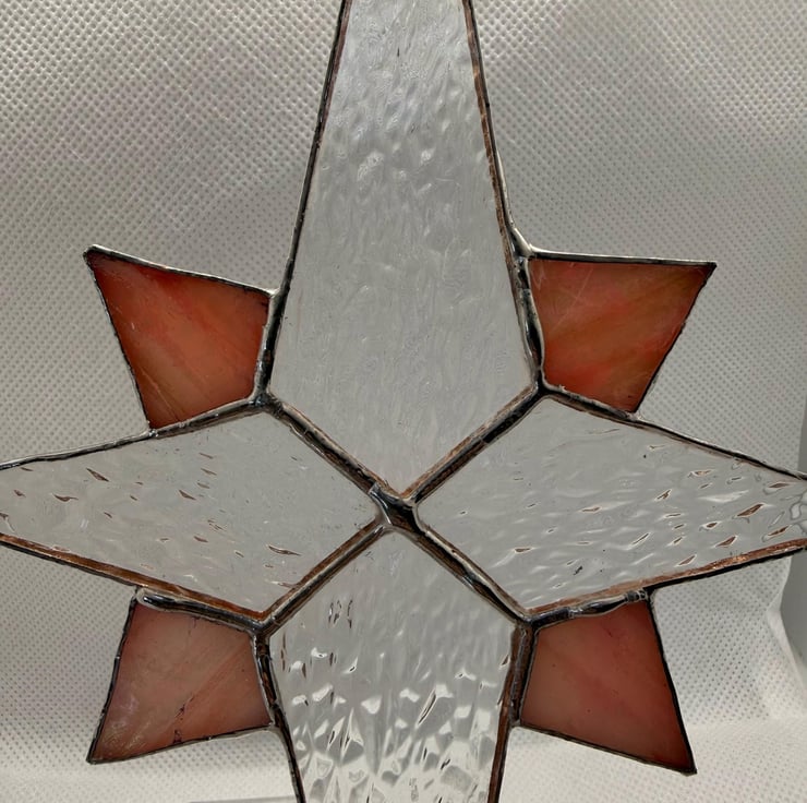 Stained glass Bethlehem star - Clear irridised glass with sunset orange quarters