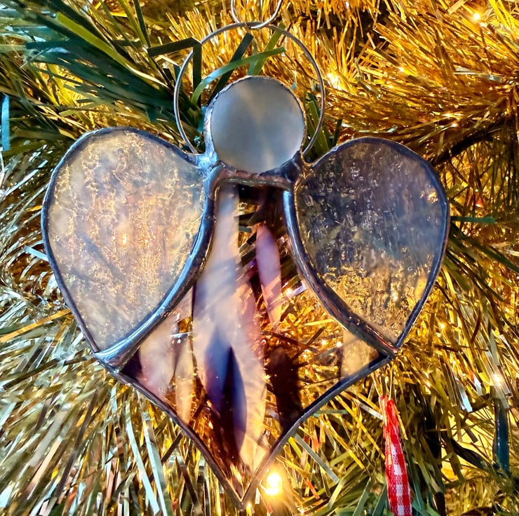 Hung from its halo, this angel has a gentle, uplifting presence, with colours that shift beautifully as the light moves through them. It looks lovely in a sunny window, brings a calm touch to a bedside or reading nook, and makes a thoughtful gift for new homes, birthdays, remembrance moments or anyone drawn to handmade stained glass.