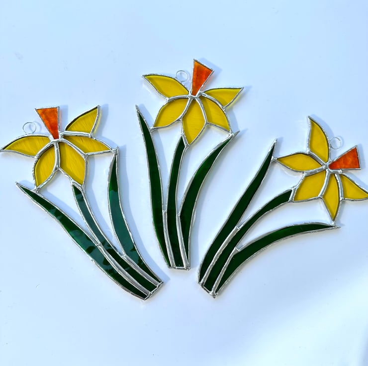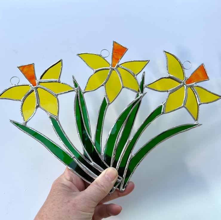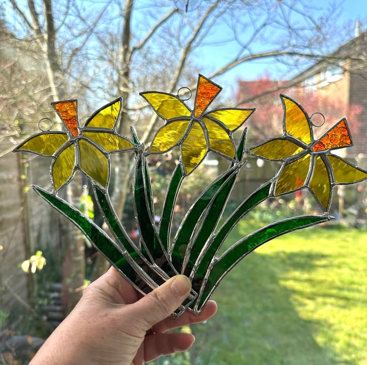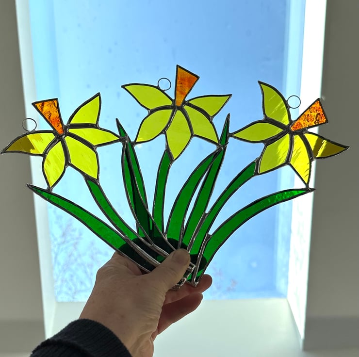 Daffodil suncatcher made using beautiful stained glass by Carole's Glass.