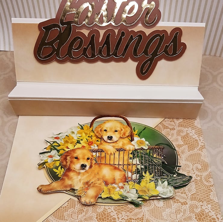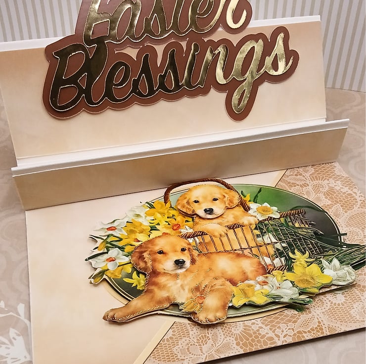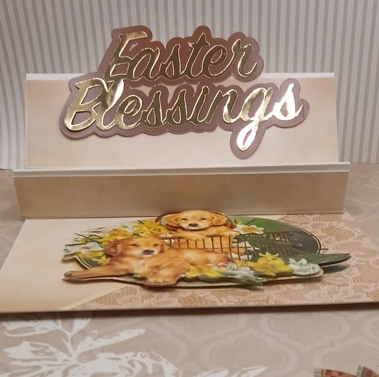 Dimensional daffodil and dog themed Easter card.