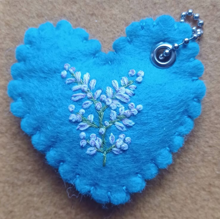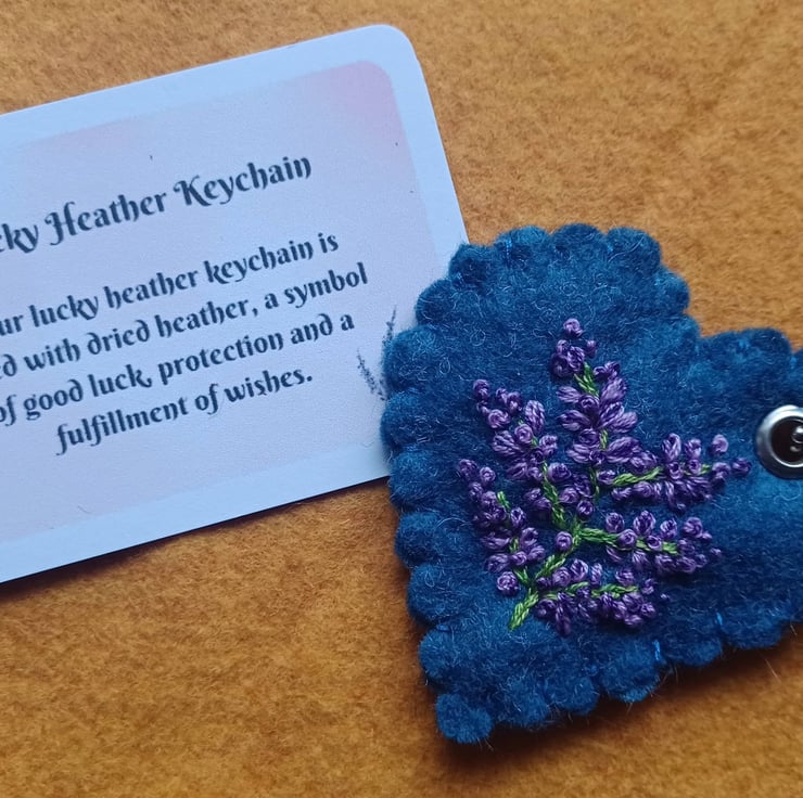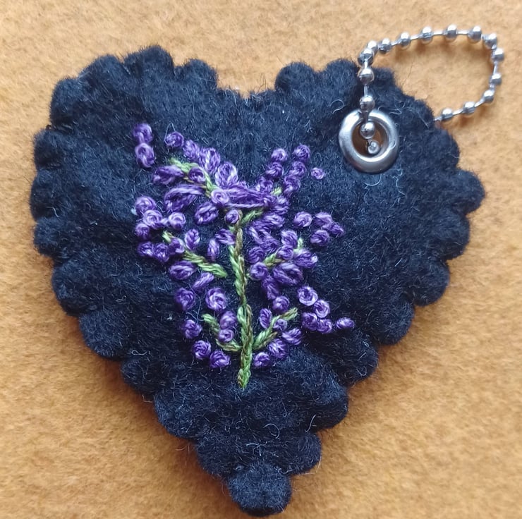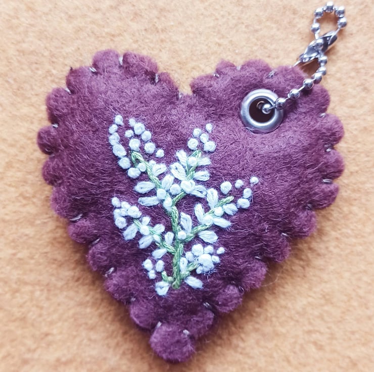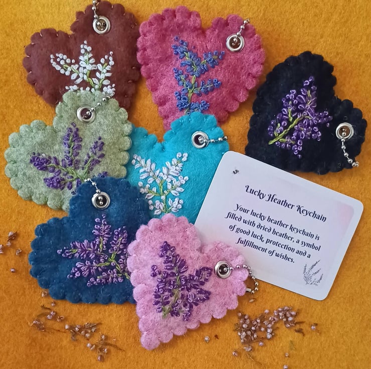These pretty embroidered keychains (bag charms or hang around the home hearts) are filled with some dried heather flower buds. They make a perfect gift to wish someone good luck, either for travel, exams, weddings, teacher gifts or as a positive pick-me-up.