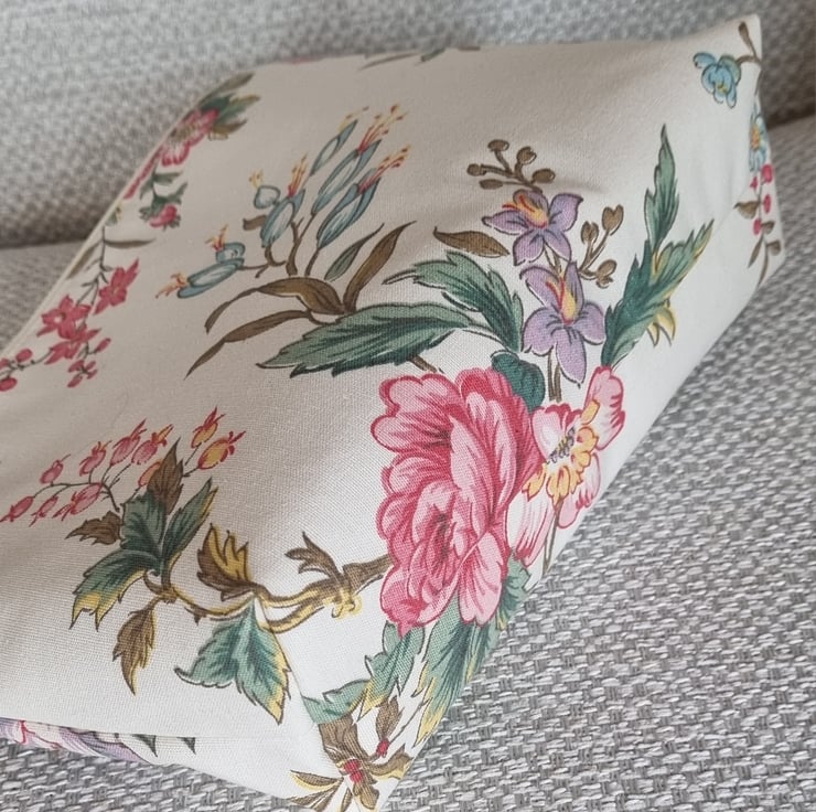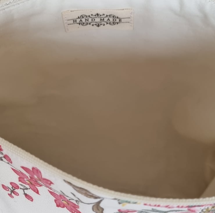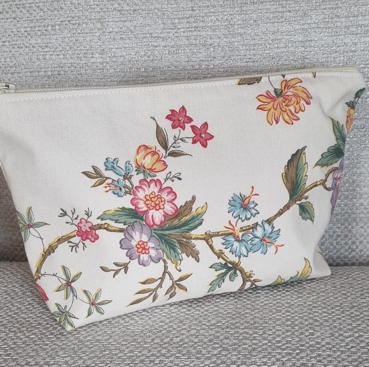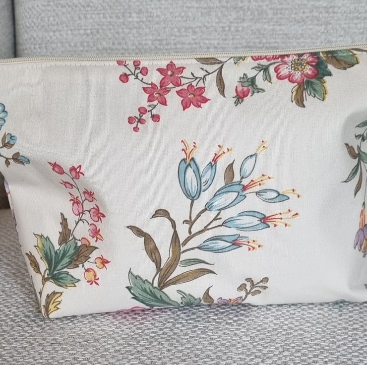 A pouch that had a past life - it was once a curtain! Stitched, slowly and thoughtfully from upcycled vintage curtain fabric. It has given new life to beautiful material, truly one of a kind.