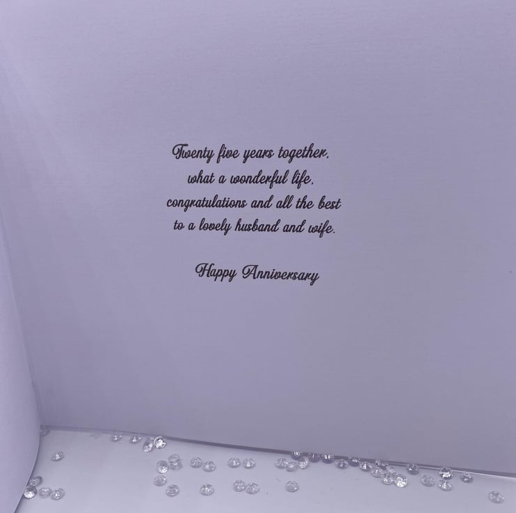 A stunning Silver anniversary card - celebrating 25 years of marriage, with a sentiment included.