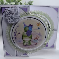 if required there is the option of personalising this with an age or name in the same colour as the background of the card. If you would like a verse or your own sentiment then please do get in touch.