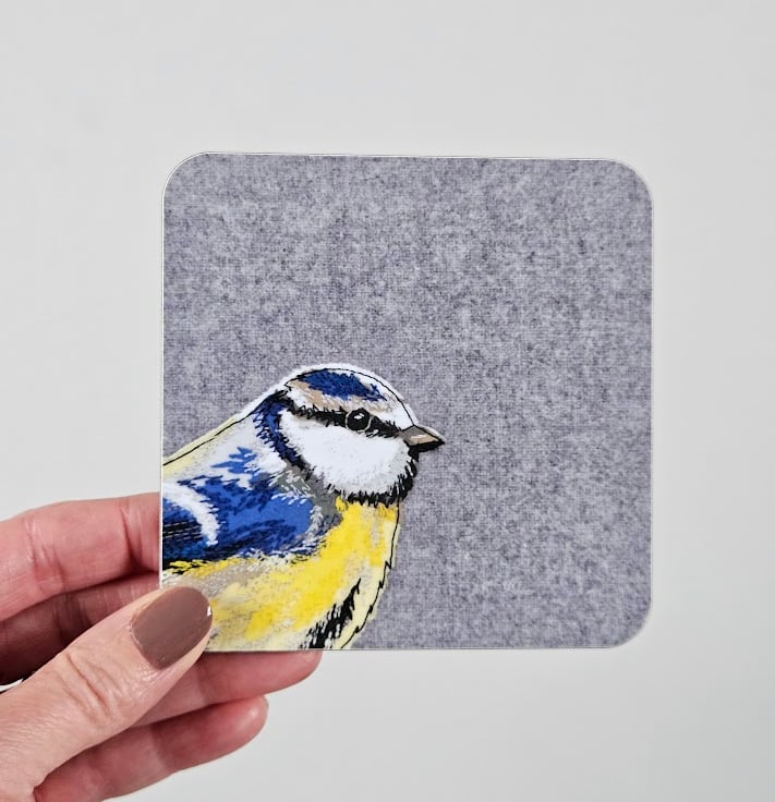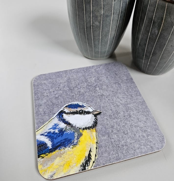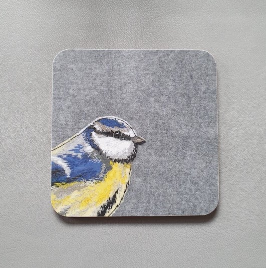 'Peeking' Blue-tit coaster, garden bird mat