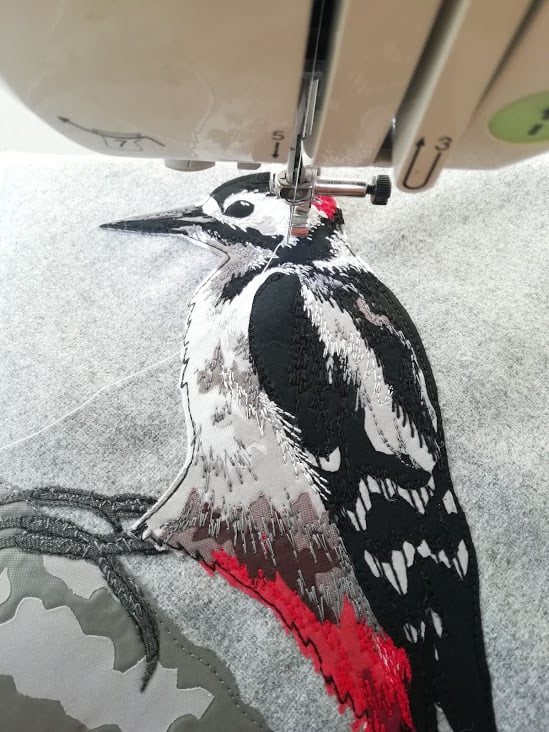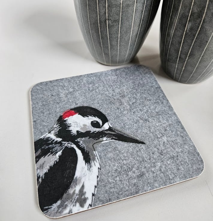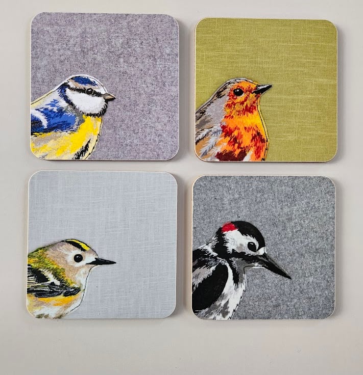My designs are inspired by British wildlife. I create them using a combination of appliqué and freehand machine embroidery. The designs are then scanned and digitally printed on coasters, placemats, tea towels, tote bags and greetings cards, and are all listed on my Folksy shop.