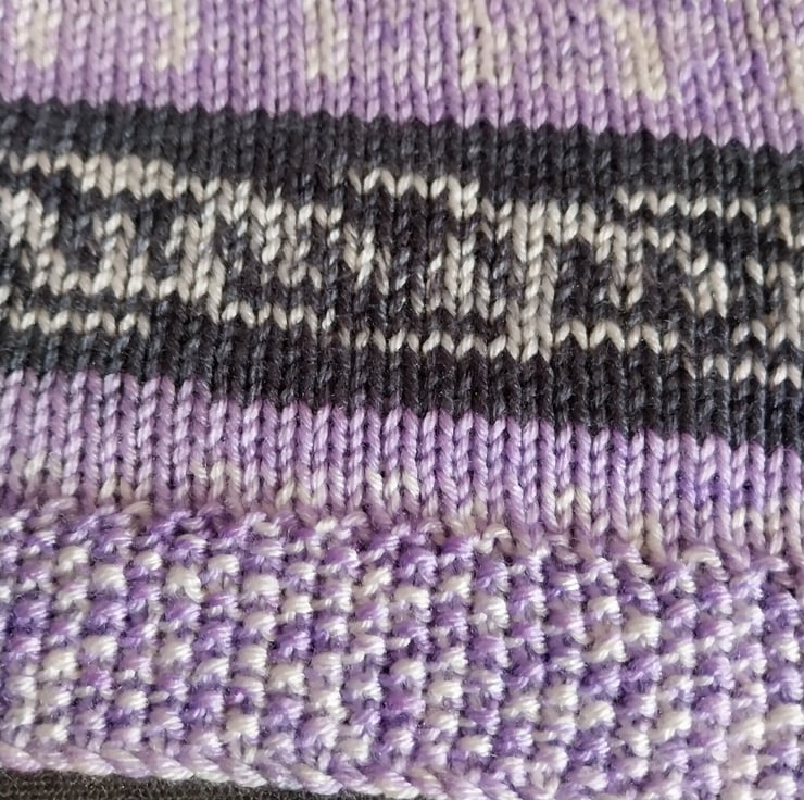 Hand Knitted Baby Blanket Lavender Grey Fair Isle Pram Blanket