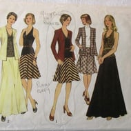 A multi-size sewing pattern for a misses' set of blouses in sizes 8 - 10 - 12 (bust 31.5"/80 cm - 32.5"/83 cm - 34"/87 cm, Style 4703). The loose-fitting, hip-length blouse has bodice gathered on to forward shoulder seam and optional shoulder pads. Models 2 and 3 also have hem gathered on to band. Model 1 has collar and front button closing. Model 2 has front neck opening with neck tie. Models 3 and 4 are collarless with back neck opening. The pattern has been used to make model 4 in size 12. All pattern pieces and styles are still useable. The pattern is dated 1986.
