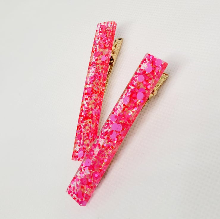 The photo shown in the listing, is an example of what you are purchasing. These Hair Clips are all lovingly made to order, so they may be ever so slight differences (exact placement of glitter, swirls in colour, crystal placement etc) between what you purchase and the photo which is what adds to it's unique charm.