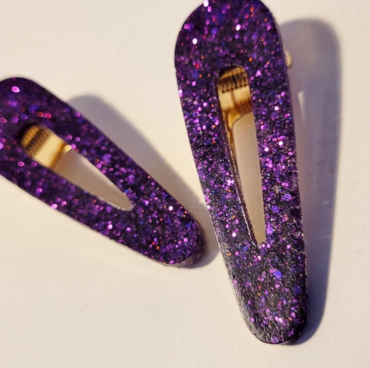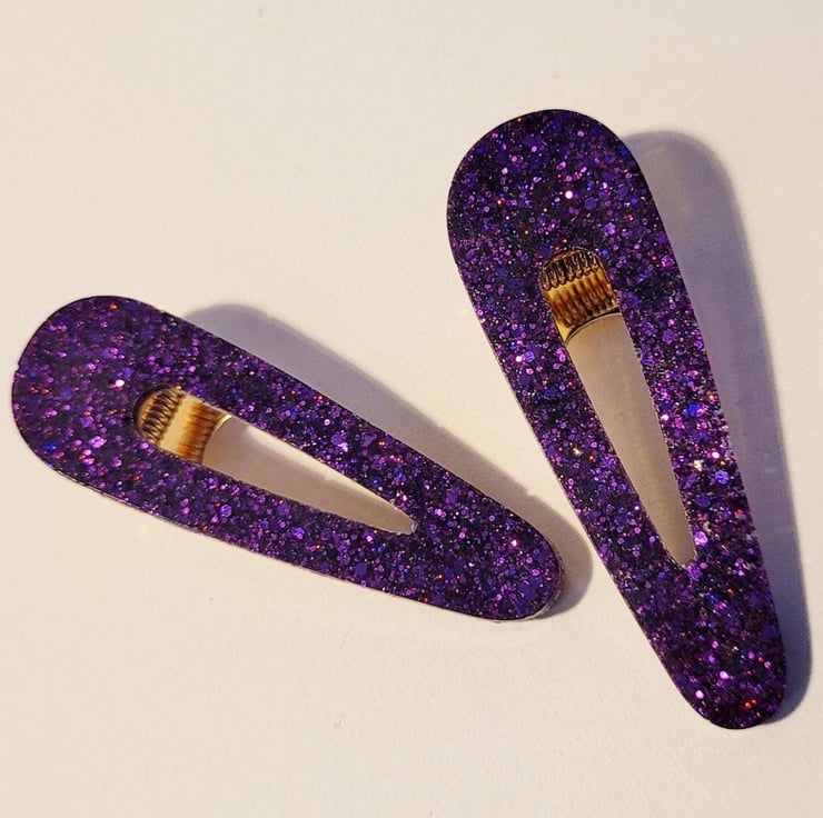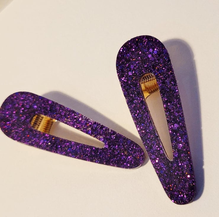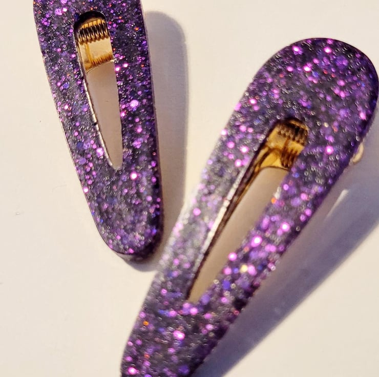 The hair clip featured in the photo is a representation of what you will receive, but because each piece is lovingly handmade, there will be slight variations that make each one unique. These small differences, such as the placement of glitter, colour swirls, or crystal arrangement, add to the personal charm of every clip, ensuring your item is truly special.