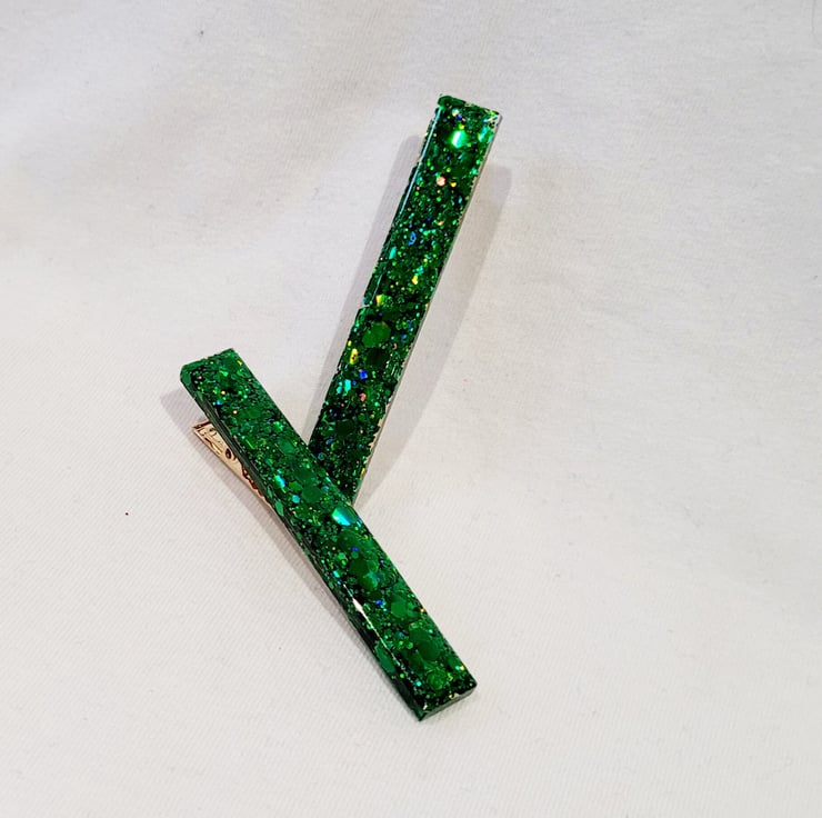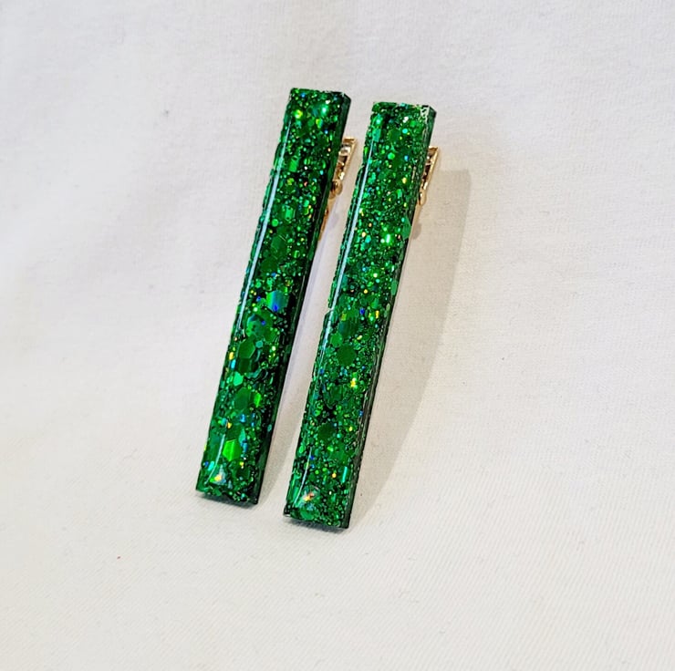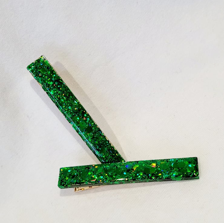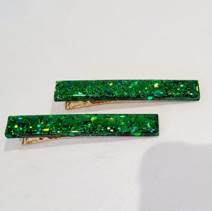 The photo shown in the listing, is an example of what you are purchasing. These Hair Clips are all lovingly made to order, so they may be ever so slight differences (exact placement of glitter, swirls in colour, crystal placement etc) between what you purchase and the photo which is what adds to it's unique charm.