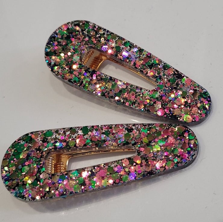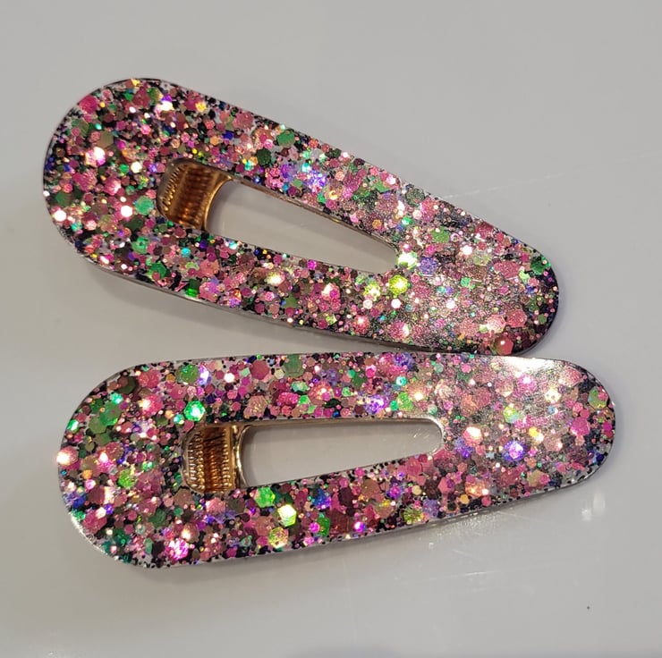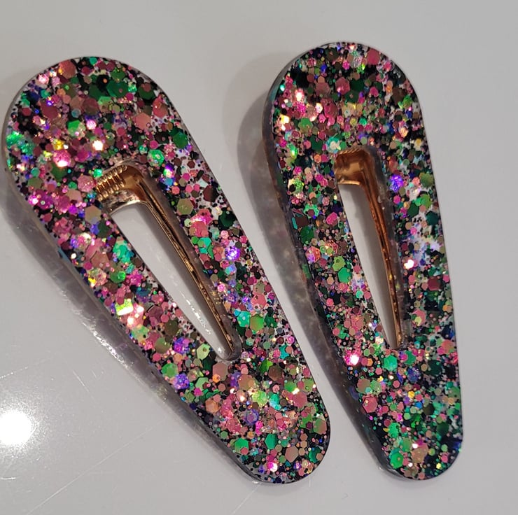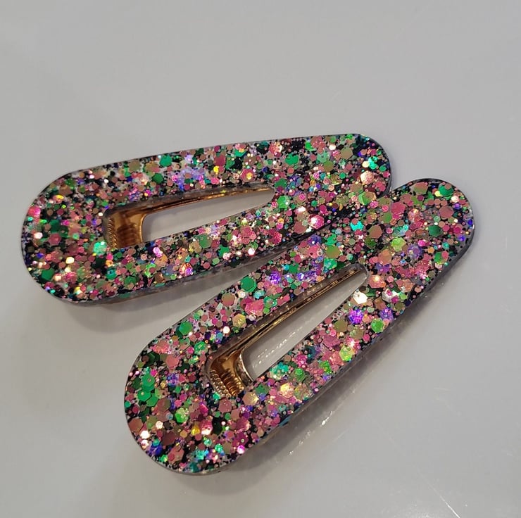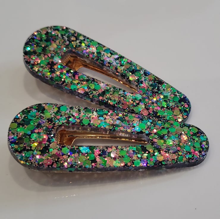 The photo shown in the listing, is an example of what you are purchasing. These Hair Clips are all lovingly made to order, so they may be ever so slight differences (exact placement of glitter, swirls in colour, crystal placement etc) between what you purchase and the photo which is what adds to it's unique charm.