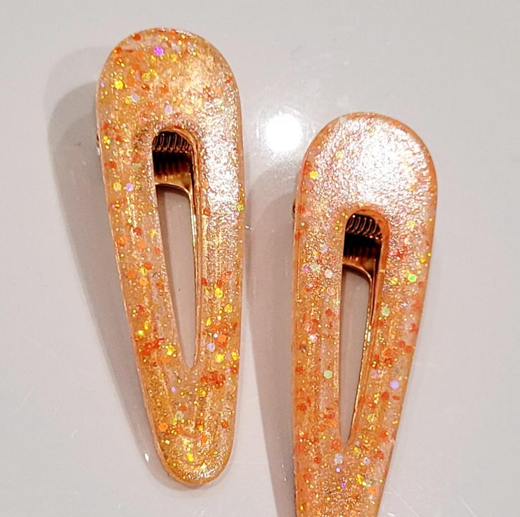 The photo shown in this listing is an example of what you are purchasing. Each hair clip is lovingly handcrafted to order, so you may notice slight differences in glitter placement, colour swirls, or crystal positioning. These tiny variations are part of the magic and make every piece uniquely yours.