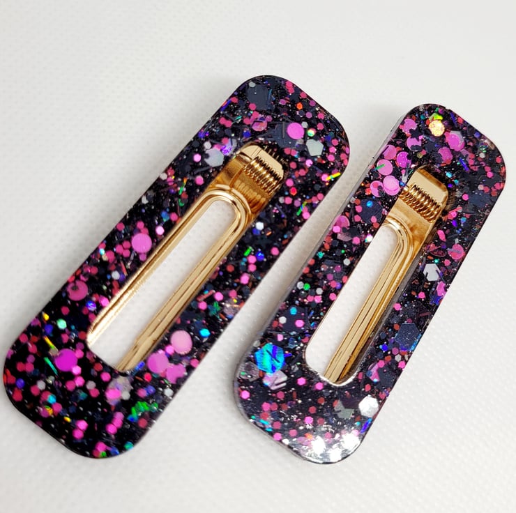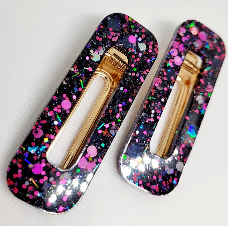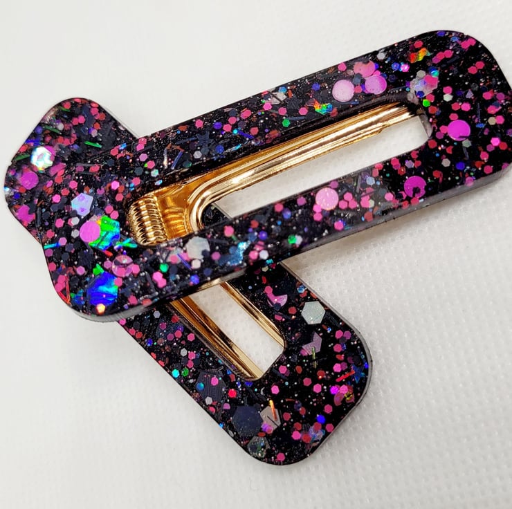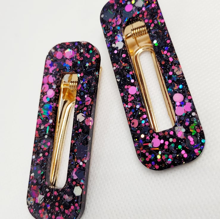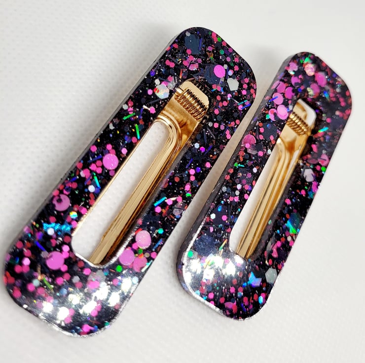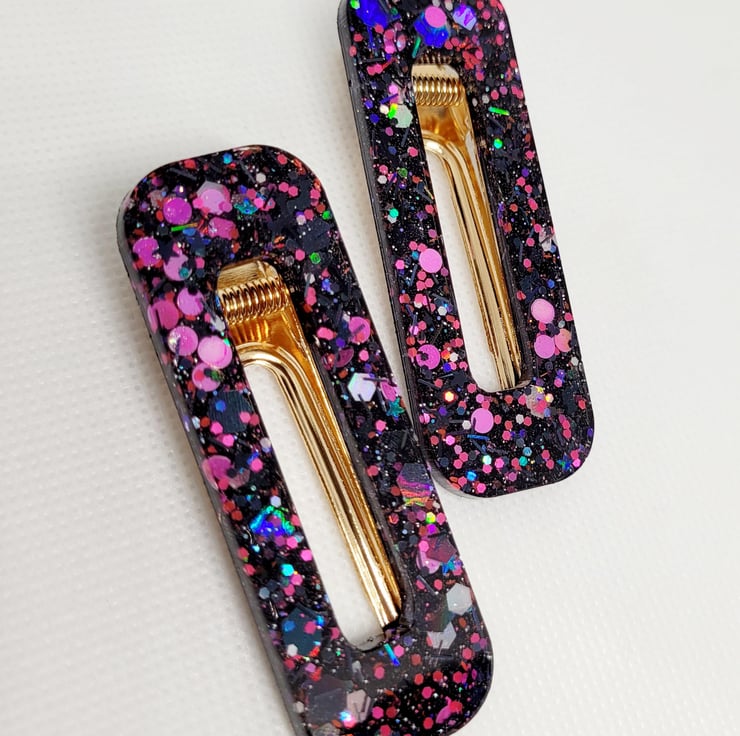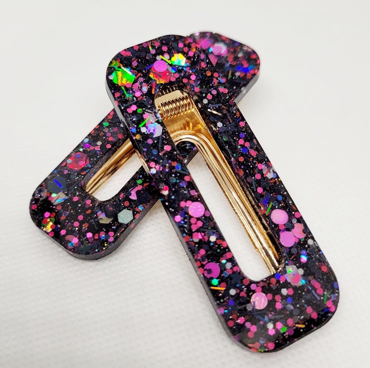 The hair clip featured in the photo is a representation of what you will receive, but because each piece is lovingly handmade, there will be slight variations that make each one unique. These small differences, such as the placement of glitter, colour swirls, or crystal arrangement, add to the personal charm of every clip, ensuring your item is truly special.