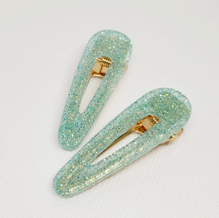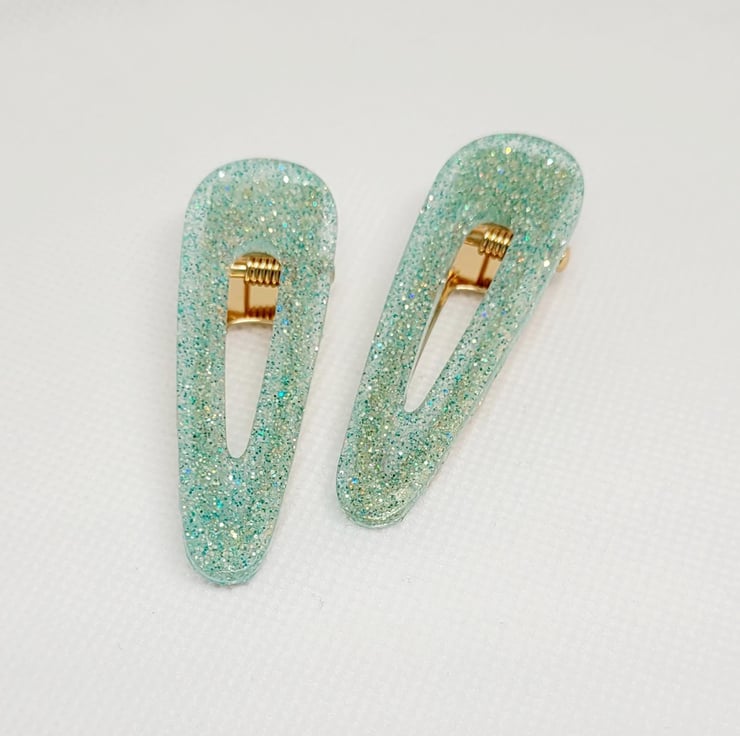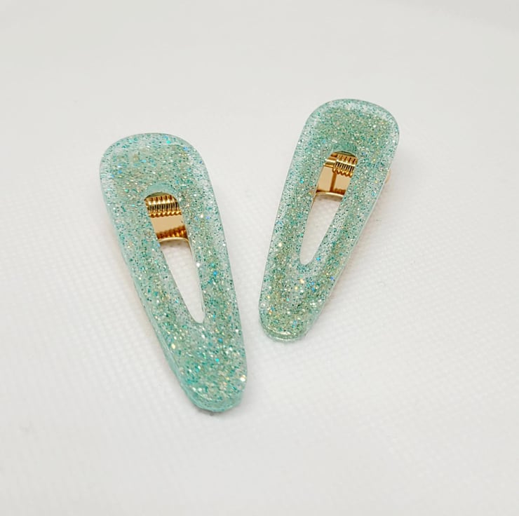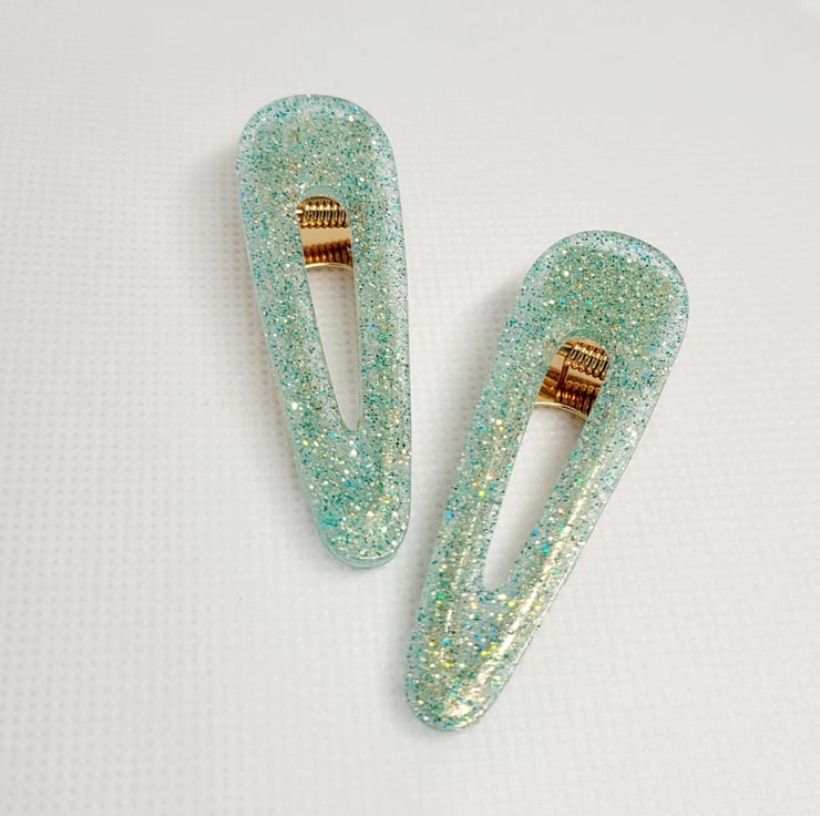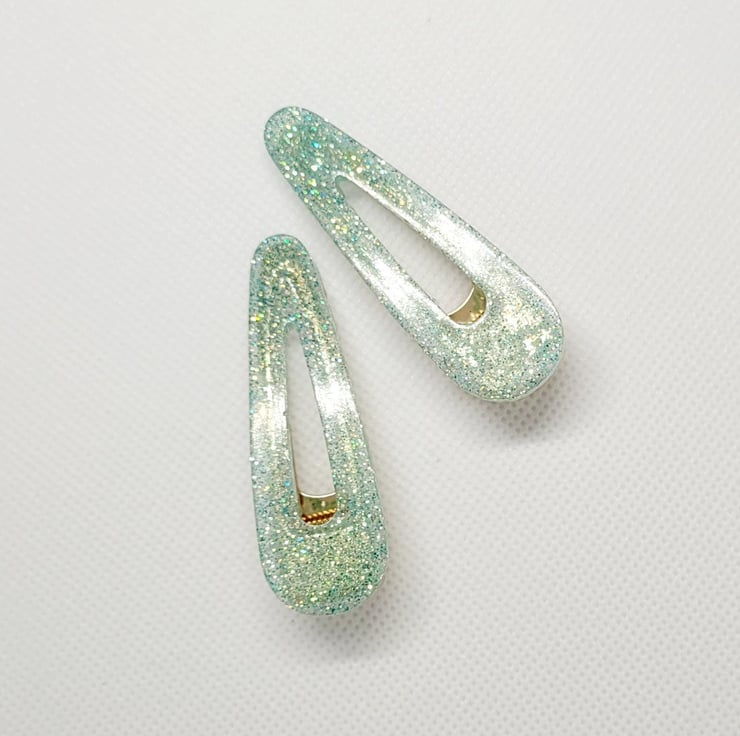 The photo shown in the listing, is an example of what you are purchasing. These Hair Clips are all lovingly made to order, so they may be ever so slight differences (exact placement of glitter, swirls in colour, crystal placement etc) between what you purchase and the photo which is what adds to it's unique charm.