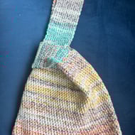 Crochet Japanese knot bag measuring 18 cm x 15 cm.