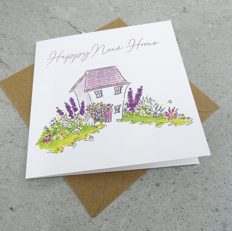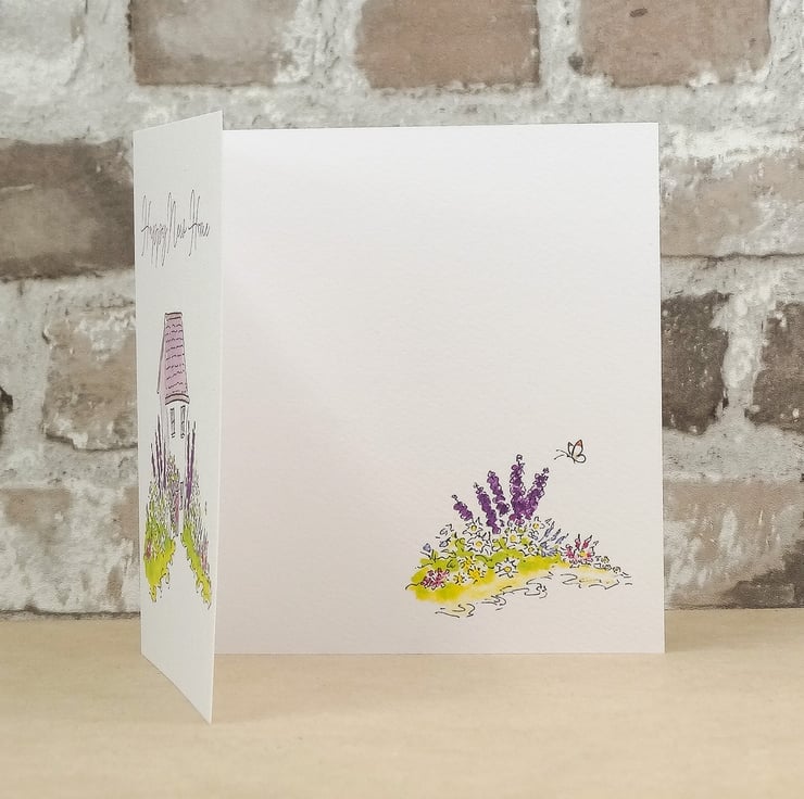 This New Home Garden card has been printed with my original artwork on 'New' white matt texture FSC approved 280gsm card and comes with a brown kraft envelope protected in a clear biodegradable bag.