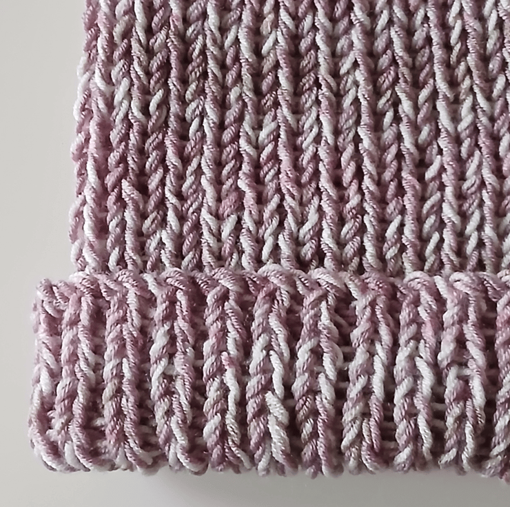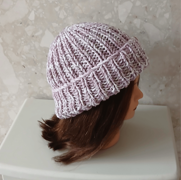 Composition: The hat is knitted in a simple rib pattern in the round and so there is no seam.