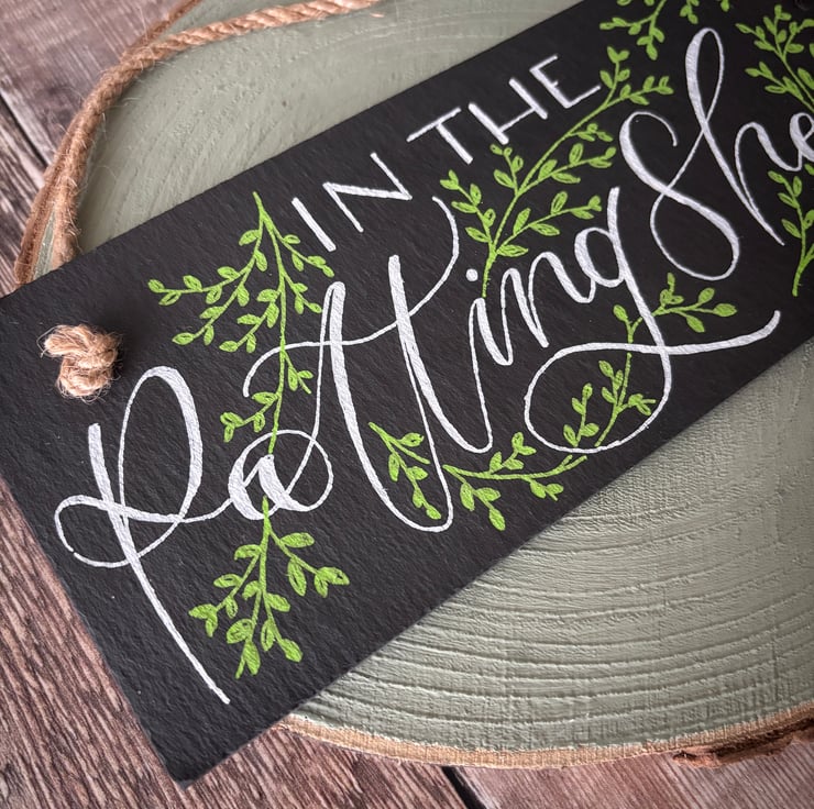 PRODUCT: Garden Slate Decorations - hand written in modern calligraphy.