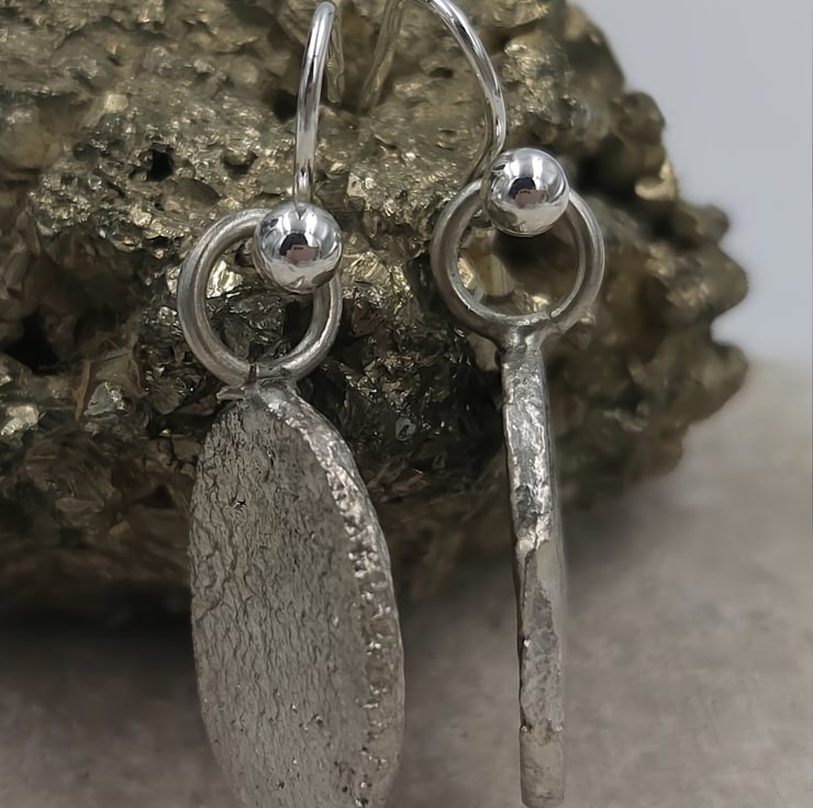 Hand Forged Sterling Silver Dangle Earrings – Molten Texture, Artisan Jewellery