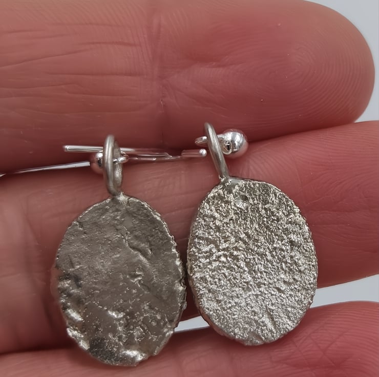 These oval sterling silver earrings are hand forged one at a time, allowing the metal to melt, flow, and settle into an organic, molten texture that can’t be replicated. Each earring is individually formed, creating subtle variations that celebrate the beauty of handmade jewellery.