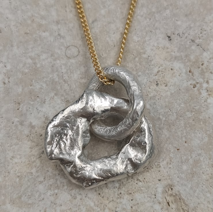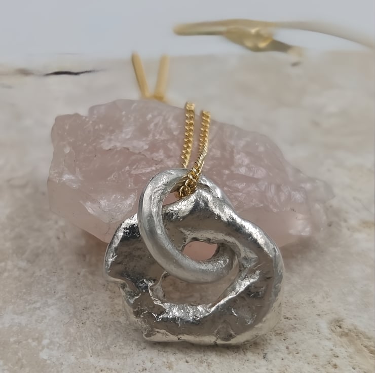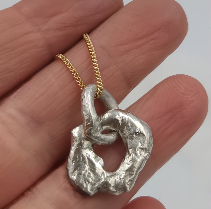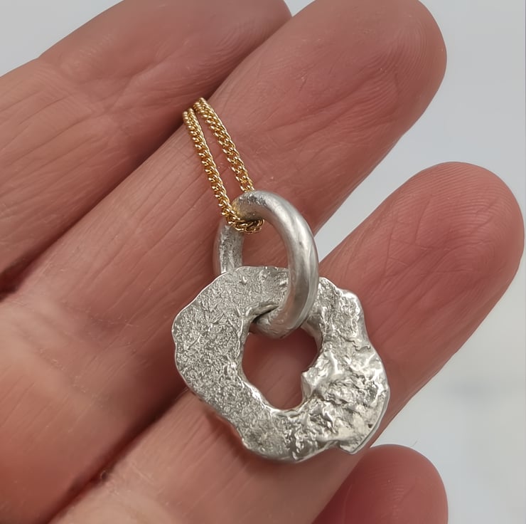 Handmade molten sterling silver circular pendant