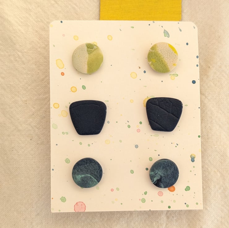 Struggling to pick? Get 3! 3 pairs of our colourful polymer clay stud earrings. Perfect for work and play, mix and match, or as a lovely gift.