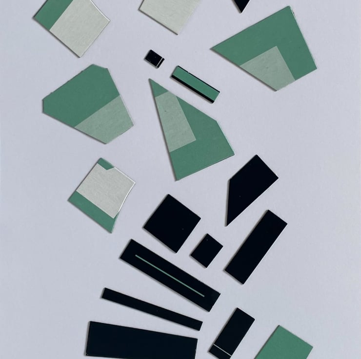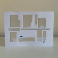 Materials: white card 300gsm; water-based glue; upcycled colour-printed card