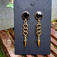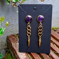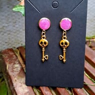 Each Quirken Trovery pair of earrings are hand created. These have a glitter resin-filled cabachon with a skull key drop. These are stud earrings for pierced ears.