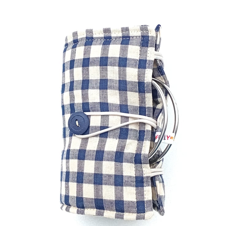 BLUE BEIGE CHECKS 'rustic', muted, matte shades, cotton outer fabric and matching liner.