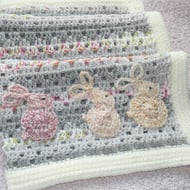 A very soft and gorgeous crocheted scarf, an ideal colour to go with many outfits. It is made from extra soft merino wool, acrylic and ten percent cashmere. Made with care and with the kind permission of the original pattern designer. Whilst I have made every effort to capture the true shade of the scarf, computer monitors do differ. The gorgeous colour can also appear slightly richer or lighter depending on the daylight. The colour is rather sweetly referred to as 'puddle'.