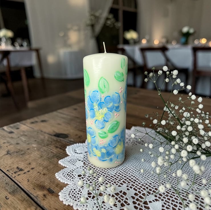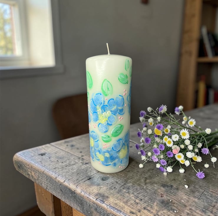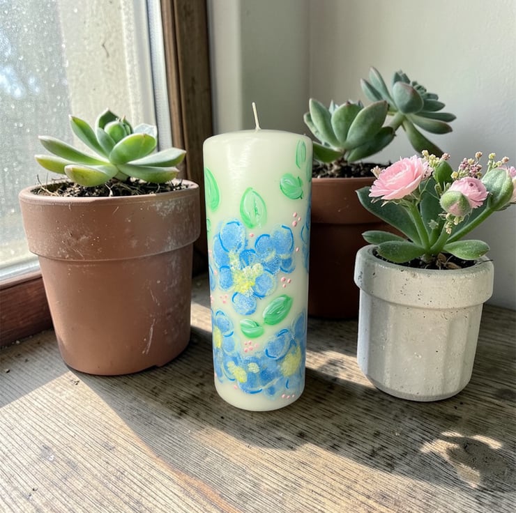 Place candles on a heat proof surface. Keep away from pets and children. Created using water based acrylic paints and candle varnish, non flammable.