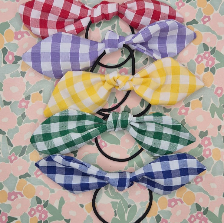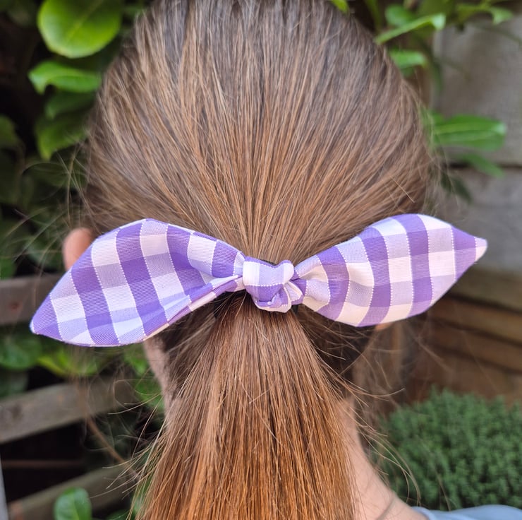 Gorgeous lilac gingham bow, attached to a black bobble. Perfect for finishing off their school uniform, or for grown ups who just love gingham! Lots of colours available! Check out the rest of my listings.