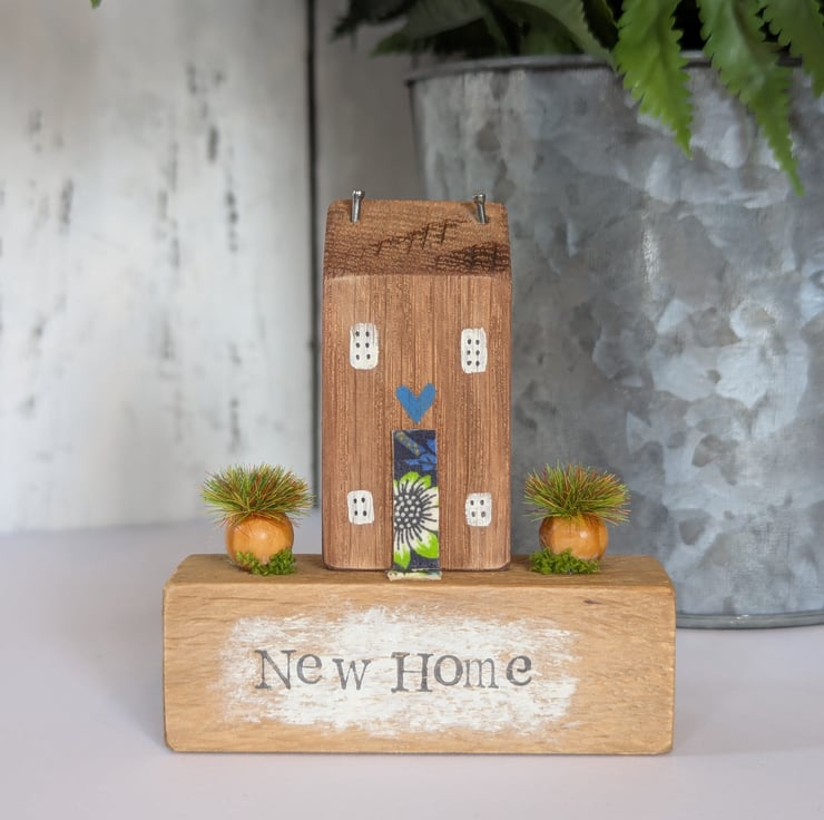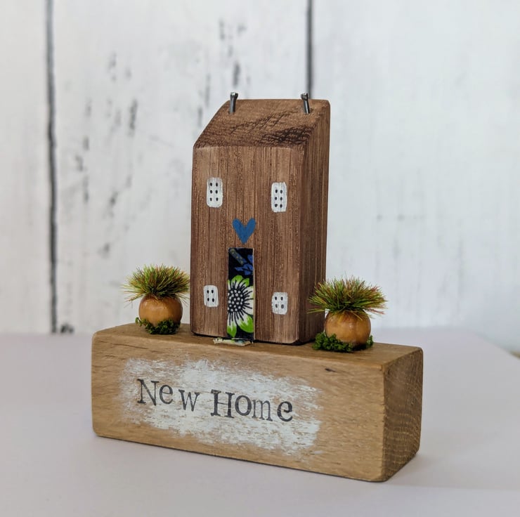 New Home is a tiny handmade oak cottage decoration.