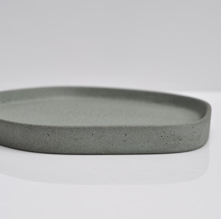 Hand-poured textured concrete tray with a sleek, minimalist design. Perfect for organizing small items or adding an industrial touch to any space.