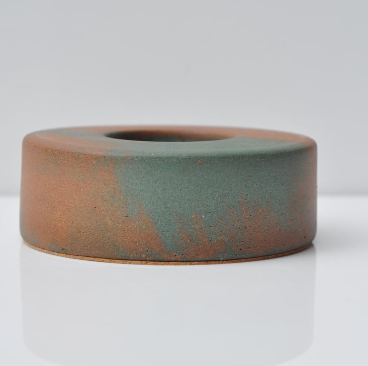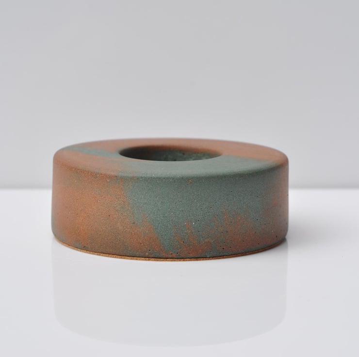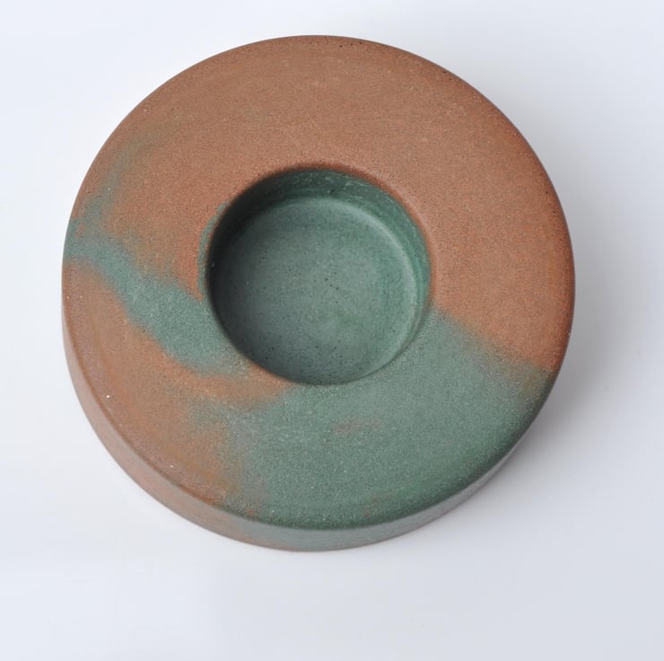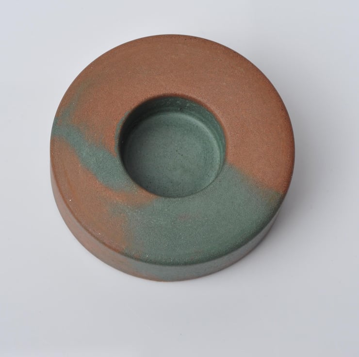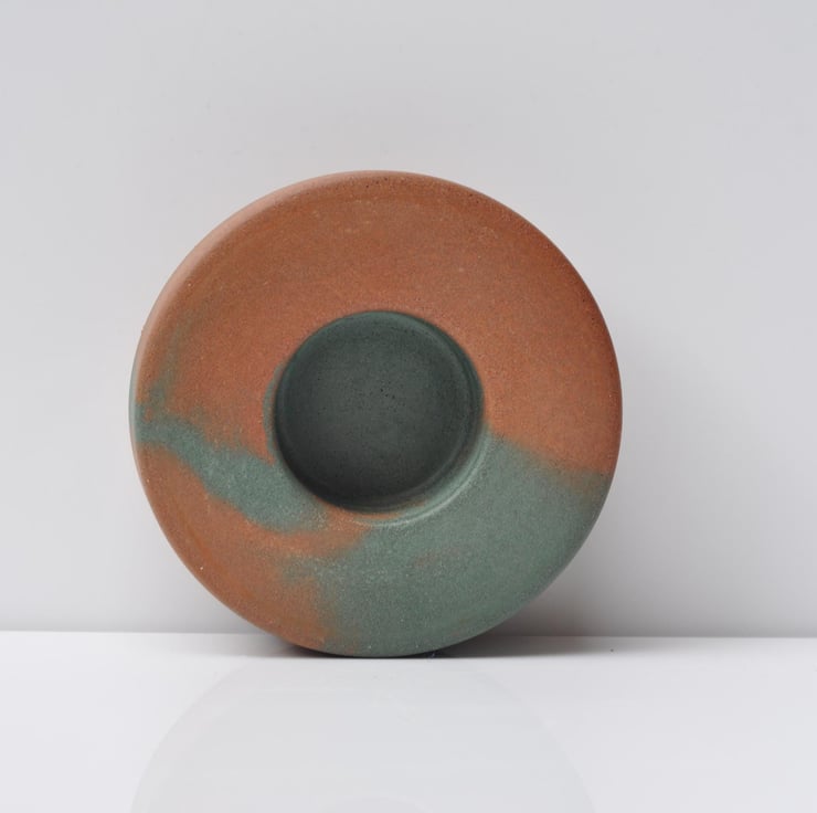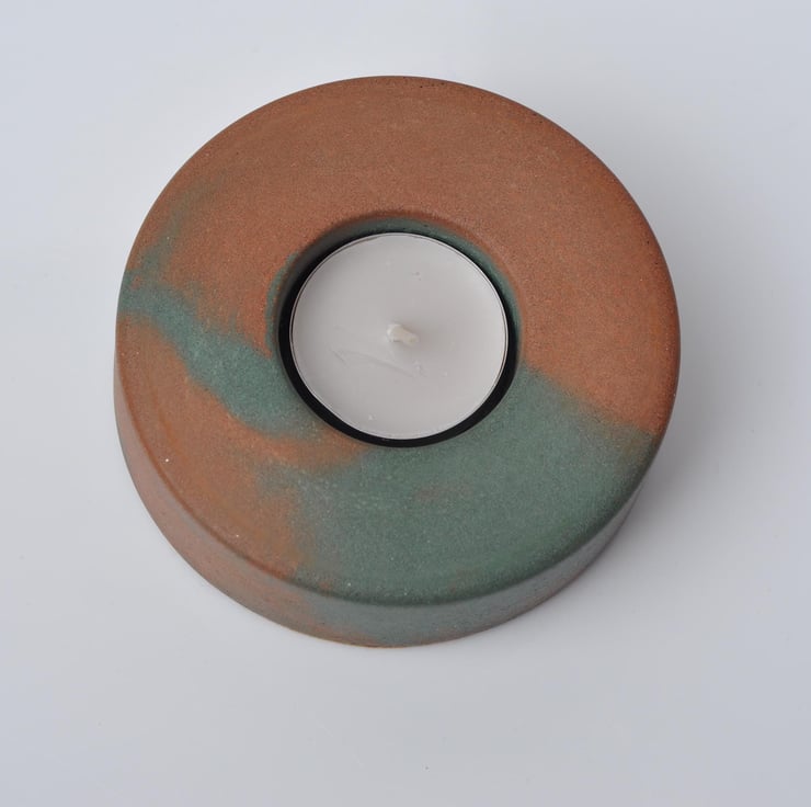 Round Handmade Concrete Brutalist Tealight Holder Handmade Minimalist Candle Holder Green and Orange Modern Industrial Decor