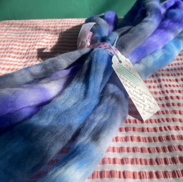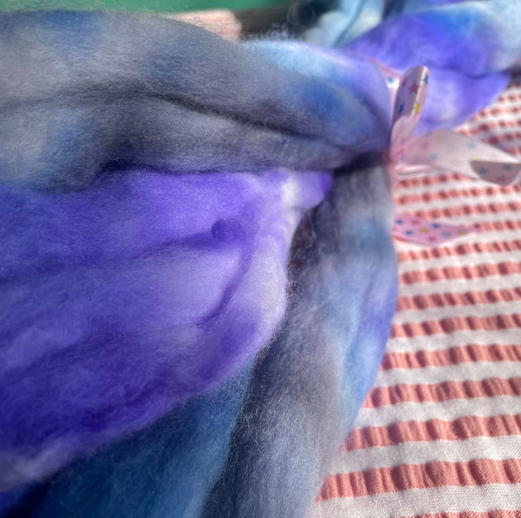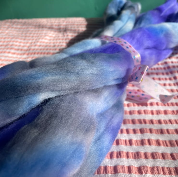 These are my very first attempts at dyeing wool tops. I'm happy that the professional acid dye is exhausting and that the water is running clear, the texture feels good and all test spins I have done have drafted easily however they aren't perfect so I'm offering them at a discounted rate until I'm satisfied with all aspects of the process. Please do get in touch with your feedback, I would love to hear how you got on spinning them!